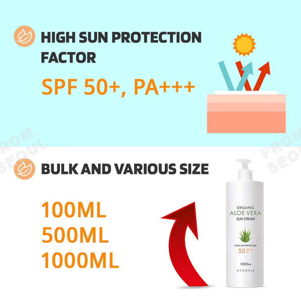 Ayodele Natural Aloe Vera Sunscreen 500ml / Korean Sunblock Lotion SPF50+ PA+++ Body Sun Block Protector Face Sun Screen Skincare