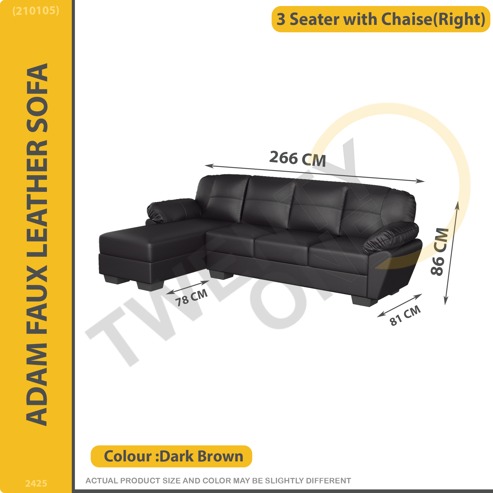 Dark Brown 2 SEATER WITH CHAISE(Right)