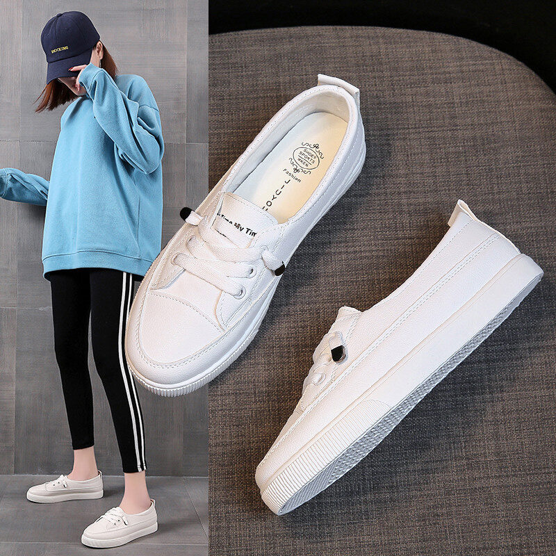 Women's Thin Low Vamp White Slip-on Casual Shoes for Summer