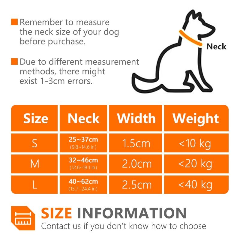 ◾Remember to measure your dog’s neck size before purchase,if you have any size choosing problem,don’t be hesitate to contact us,we will help you choose the proper size.