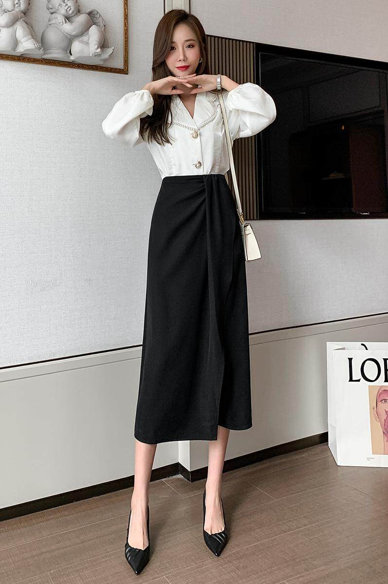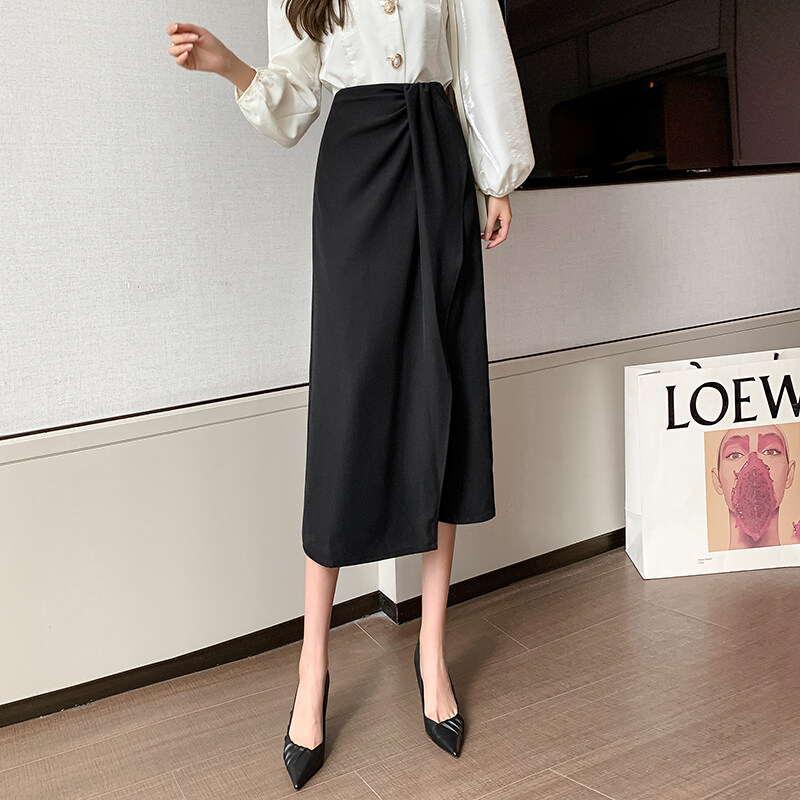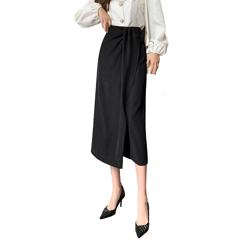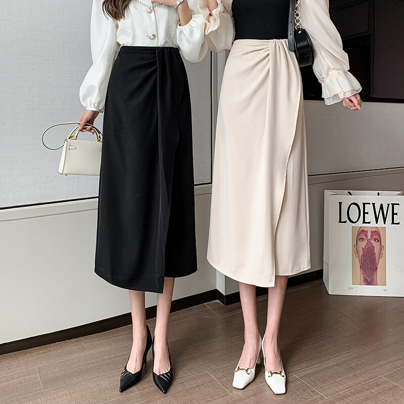 YIGE Korean fashion style irregular mid-length skirt split ends hip-lifting A-line skirt