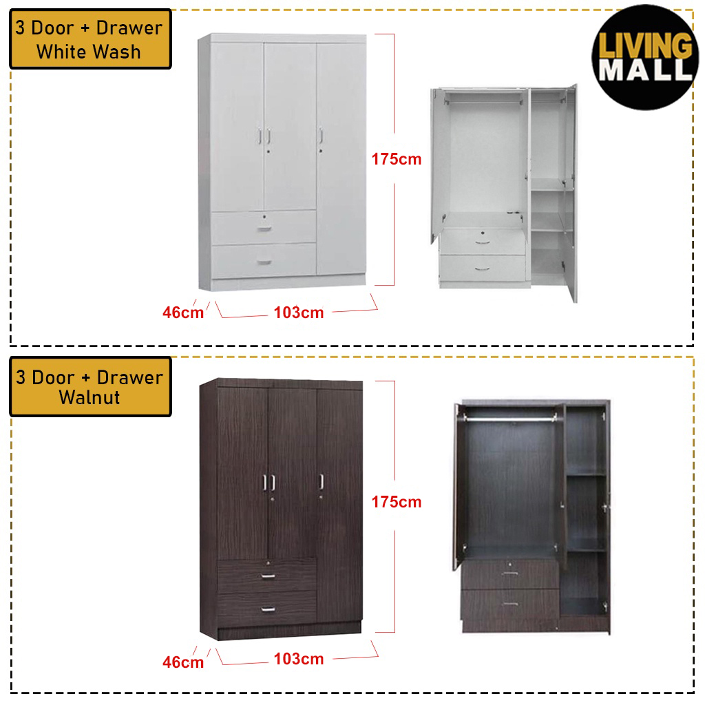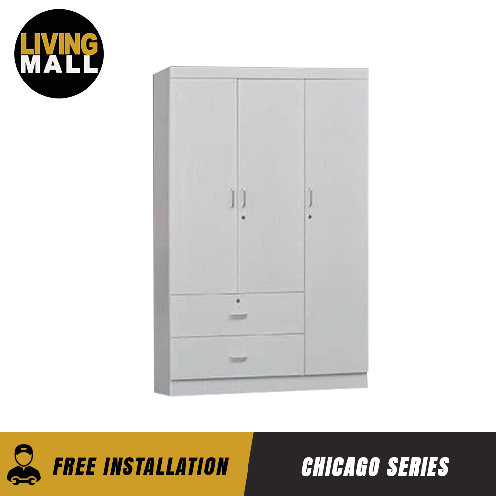 3 Door White - L 89.1. x D 40. x H 179 cm