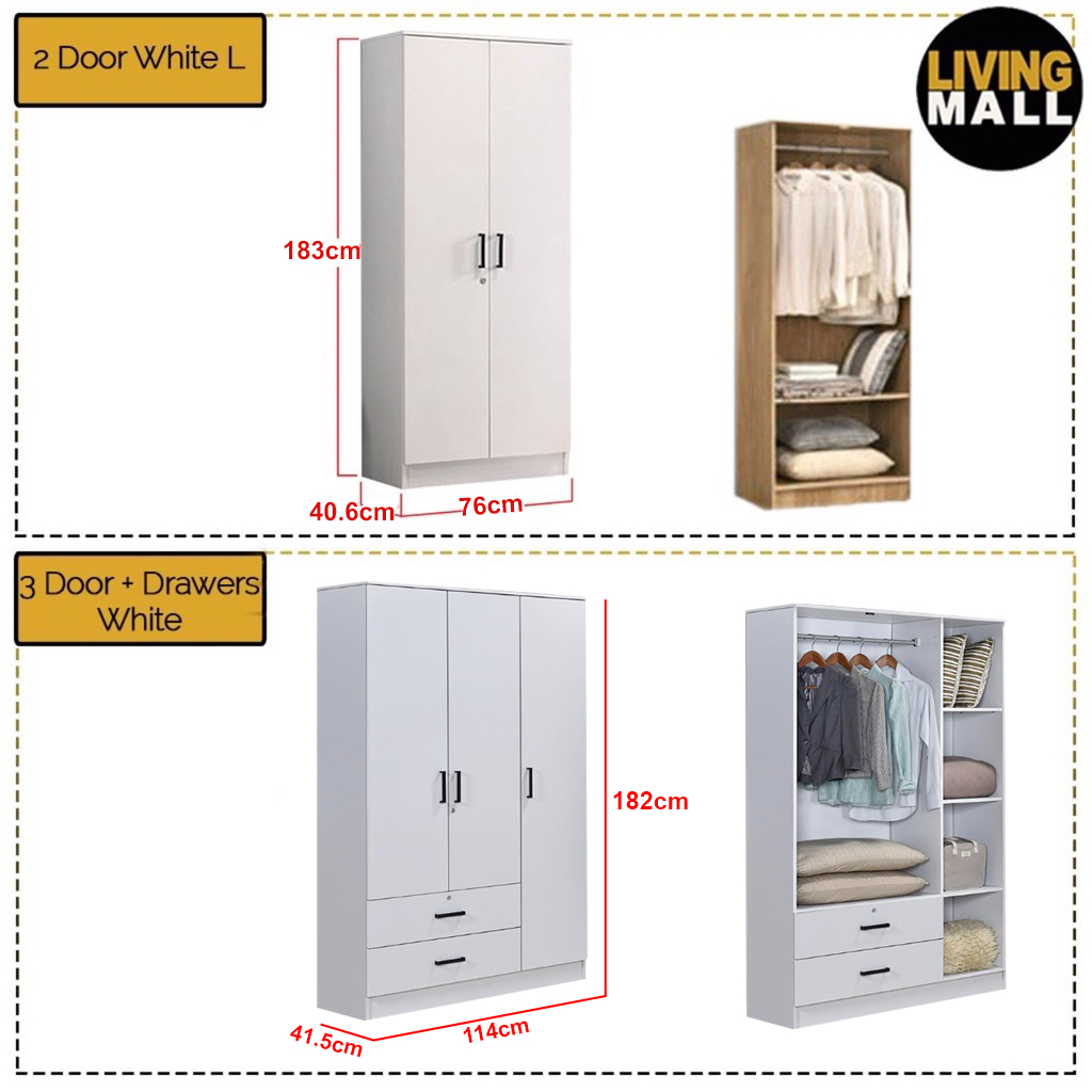 2 Door + Drawer White - L 76. x D 41.5. x H 182 cm