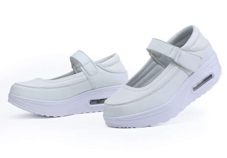 2024 Rocking Shoes Women's Shoes Spring and Summer Work Nurse Shoes White Wedge Thick Sole Platform Shoes Travel Shoes Black Single-Layered Shoes