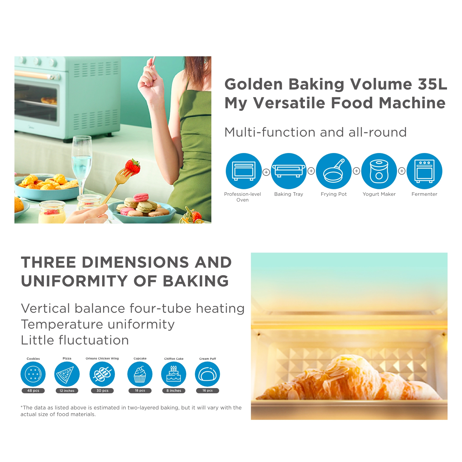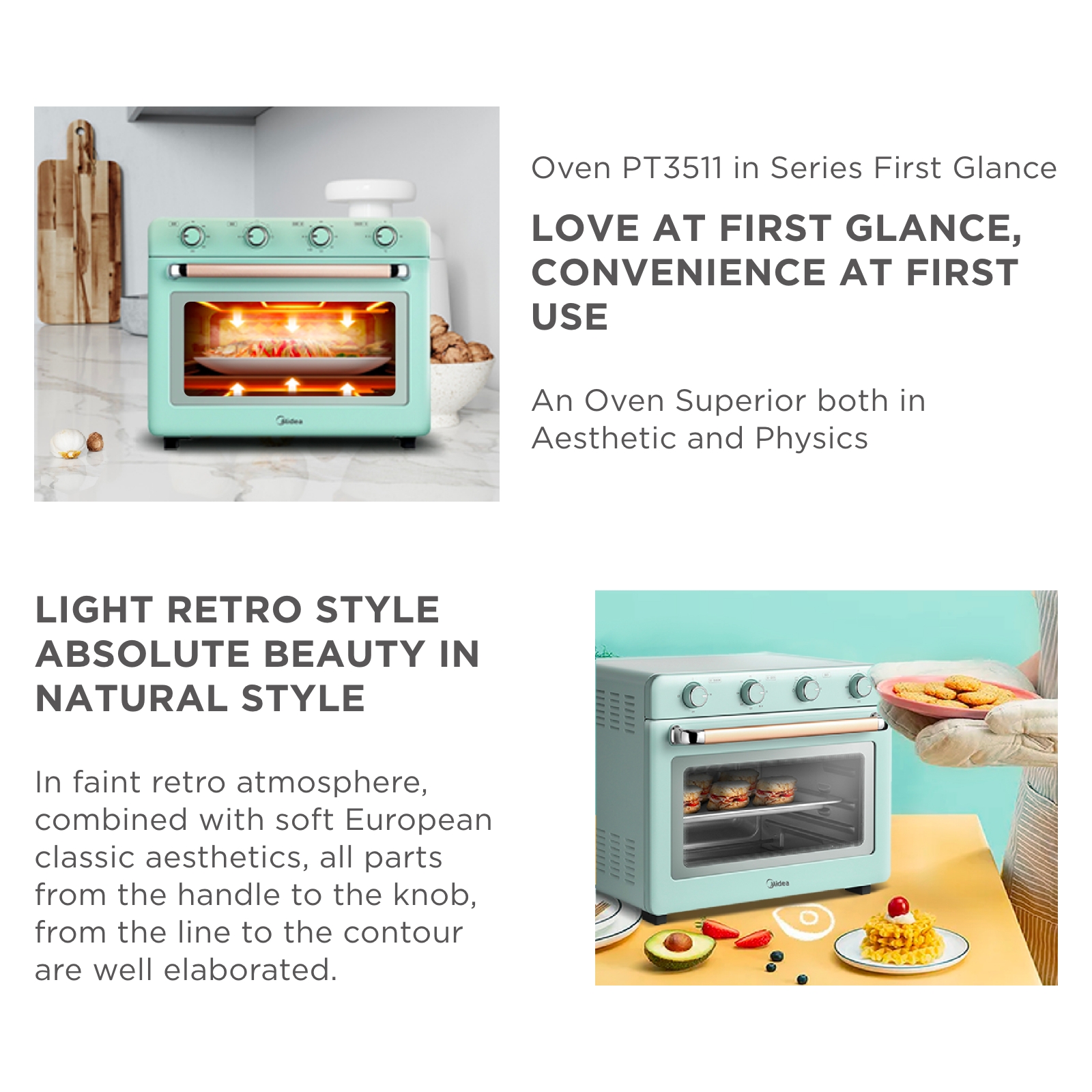 Midea MEO-35CQA-GN Light Green Electric Oven, 35L