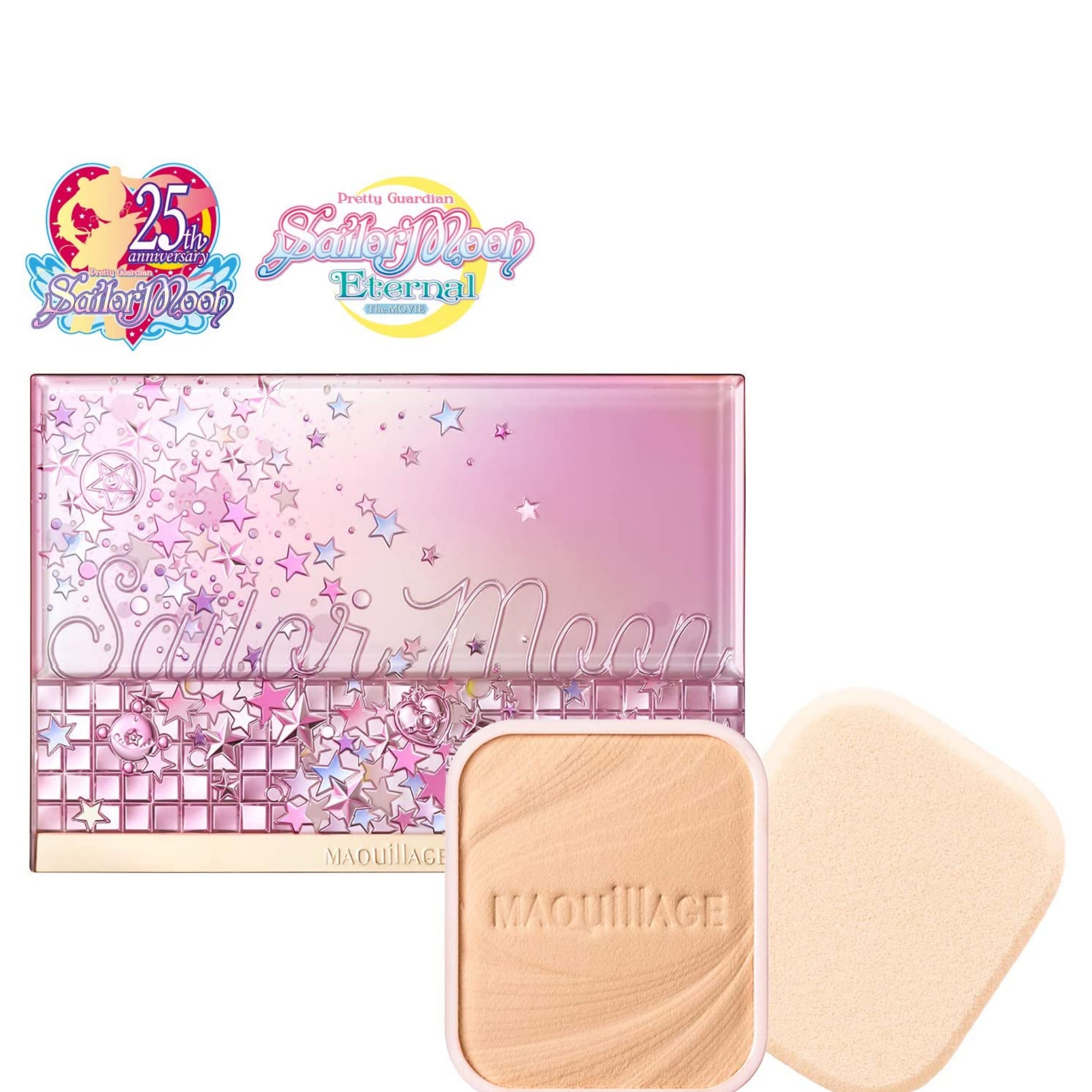 Product Introduction This limited edition set includes a specially designed compact case with stars and motifs that express the sparkle of the moment of transformation, and a powdery foundation. It's like having "beautiful skin. Softly and lightly blur pores The limited edition compact case is decorated with a glittering motif of transformation. (C) Naoko Takeuchi, PNP / "Sailor Moon Eternal" the Movie Production Committee (C) Naoko Takeuchi Dramatic Powdery UV (Refill) 9.3g SPF25/PA+++ all-season, dual-use type with/without water. Compact case SM2 (limited design), horizontal type Precautions for use Dramatic Powdery UV Always keep the sponge clean and use it as it will make the surface of the foundation hard and difficult to apply. If the sponge gets dirty, use Shiseido Sponge Cleaner N (sold separately) or lightly wash the sponge with a thin layer of neutral detergent in lukewarm water. Rinse thoroughly to remove any detergent residue, then drain and dry in the shade before use. If you find that the texture or finish of the product is not satisfactory, please use the Maquillage Sponge Puff (SF) (sold separately). Please note that the sponge puff may break if it is dropped or otherwise impacted. The SPF and PA indications on the product are measured by applying 2mg per square meter of application to the skin as specified in the International SPF Test Method. Directions for use Dramatic Powdery UV】 Put an appropriate amount on a sponge and spread from the center of the face outward. Use the remaining foundation on the sponge to finish the forehead, eye area, nose and mouth. We recommend using this foundation in combination with a makeup base such as Maquillage Dramatic Skin Sensor Base EX, which provides UV protection. Use only a small amount to achieve sufficient UV protection. _ Compact Case SM2 Take out the inner dish of the foundation (refill) and the soft-fitting sponge, and set them in the case. When setting the foundation (refill), insert the inner dish diagonally in the direction of the arrow as shown in the illustration, and press the edge of the dish from above until it clicks into place. To remove the inner dish from the case, place your finger on the edge of the inner dish and gently push it upward in the direction of the arrow.