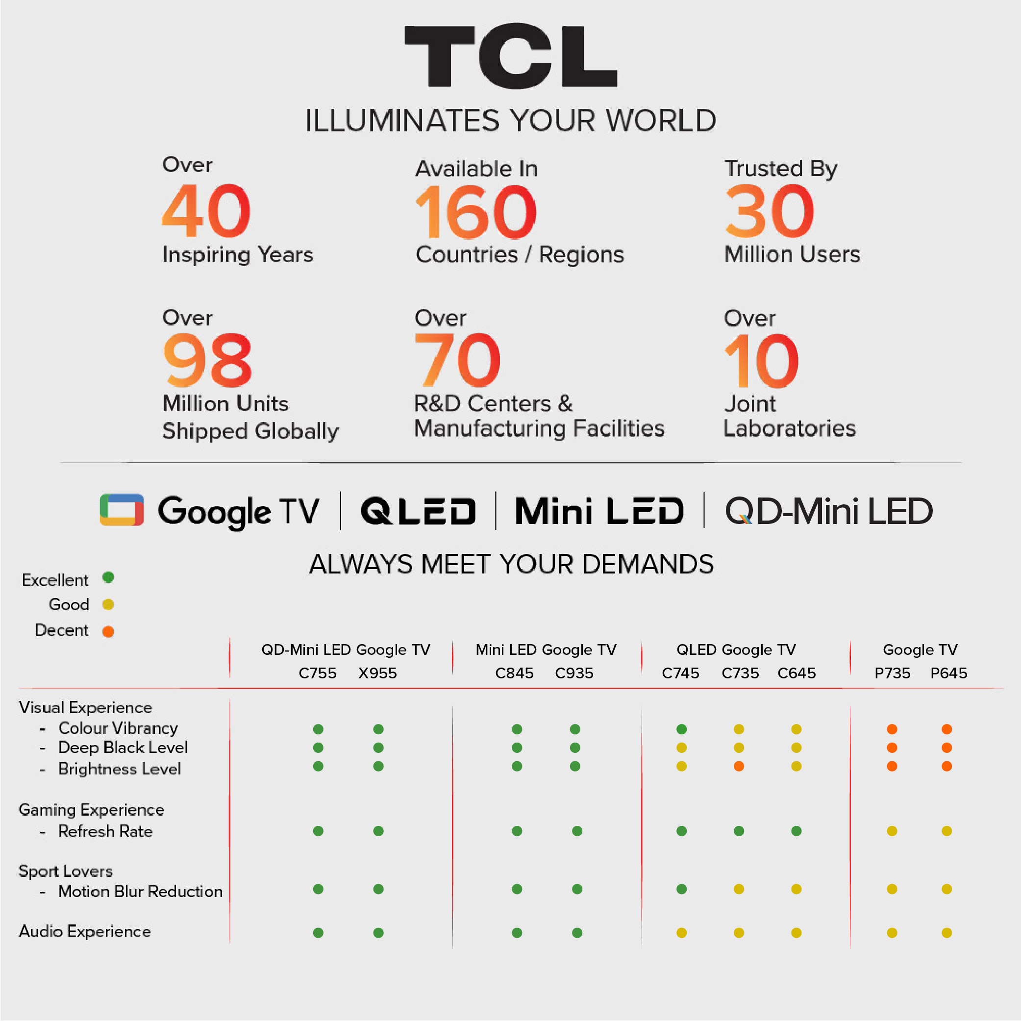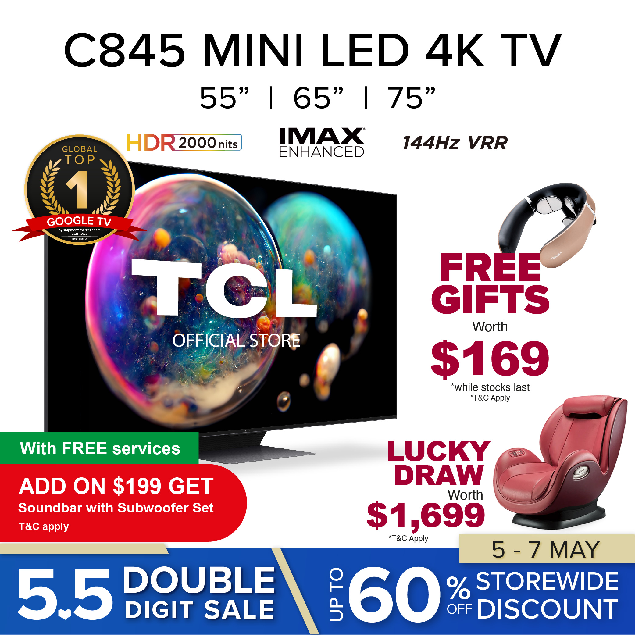 TCL C845 Mini LED Google TV Android TV 55 65 75 inch | HDR 10+ | IMAX Enhanced | Dolby Vision IQ | Dolby Atmos | Onkyo | MEMC | 144 Hz VRR