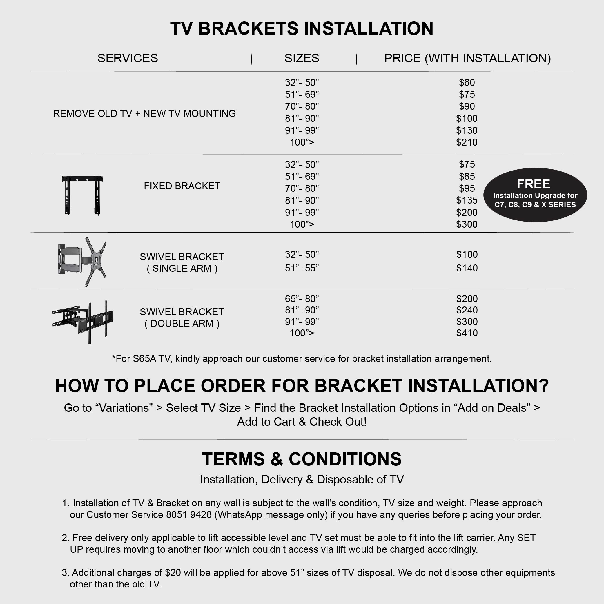 Free Bracket and Installation (either option) with every confirmed order of QLED C7 and Mini LED C8, C9 series(could not be with Sound-bar together ).