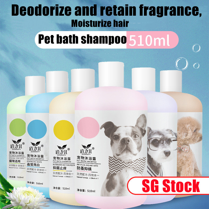 [SG Stock] Pet Shampoo 510ml Dog Cat Anti-Bacteria Anti-Itch Anti-Flea Mites Whitening Brown Fur