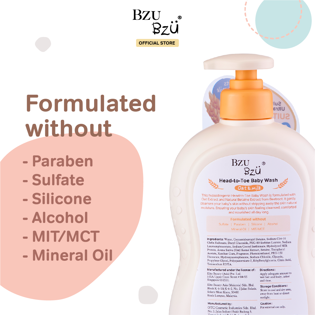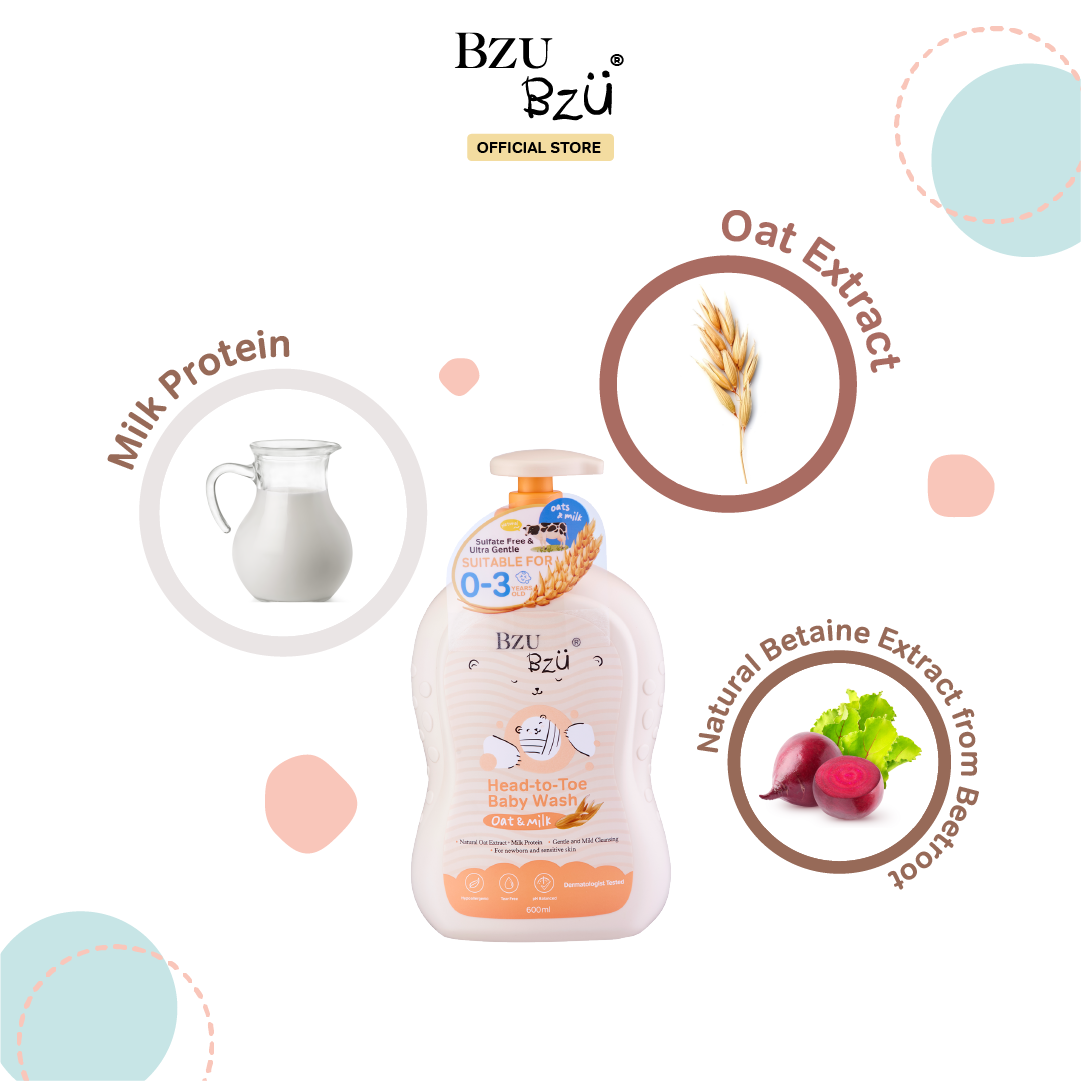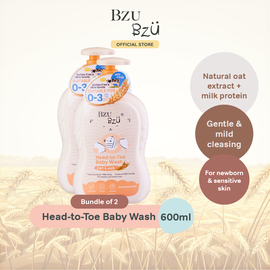 BZU BZU Head to Toe Baby Wash and Shampoo Oat & Milk Bundle Deal, 600ml | Designed for Newborn & Sensitive Skin