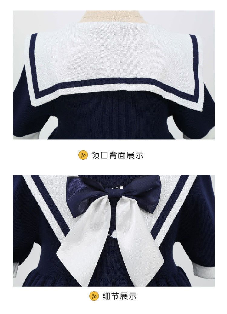 This girl's short-sleeved dress is perfect for summer. It has a stylish design that will make your child look like a princess in a Lolita or JK fashion. The navy blue color fits well with the nautical theme, and the dress has a playful and elegant feel to it. Made for young girls, this dress is perfect for any dress-up occasion, from parties to family gatherings.
