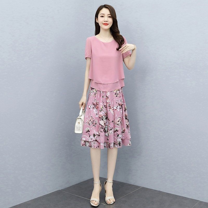 pdd8.5 Chiffon fashion suit 2023 new summer mid-length printed dress plus size casual two-piece floral dress