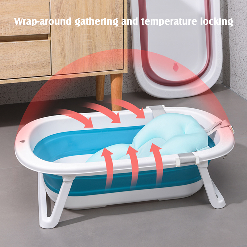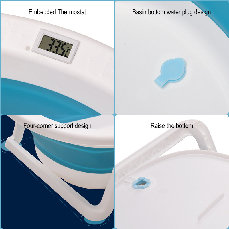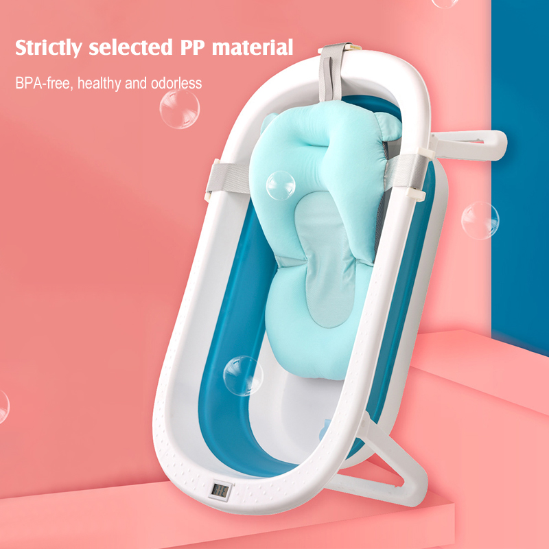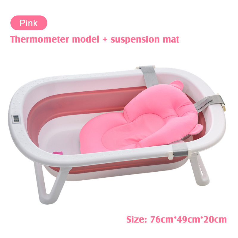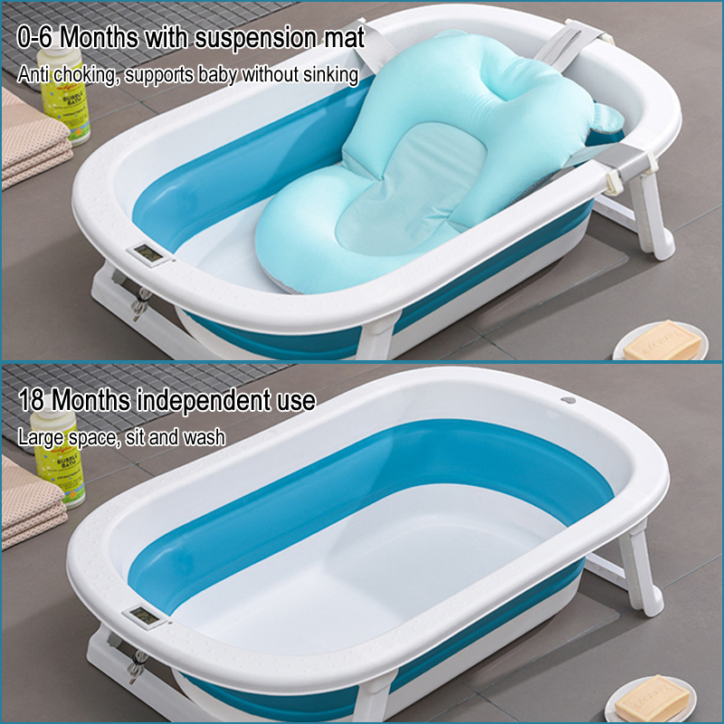 Foldable Baby Folding Bath Tub with Thermometer Collapsible Shower Basin Kids Children Newborn Bathing Bathtub Children Folding Bath Tub Convenient Storage Children Day Gifts