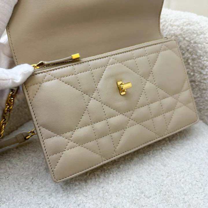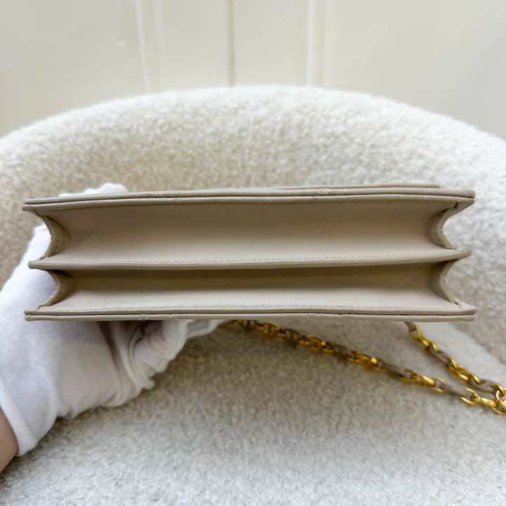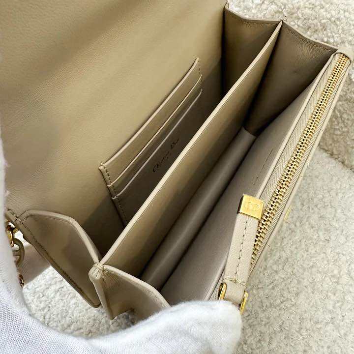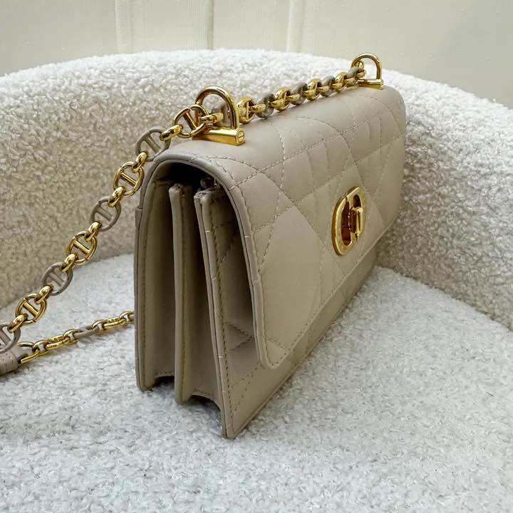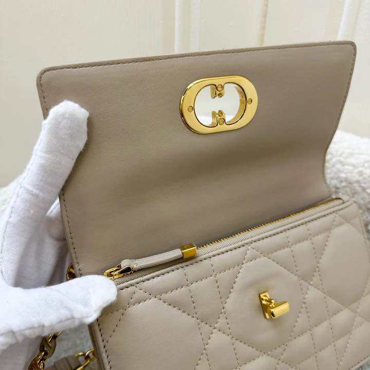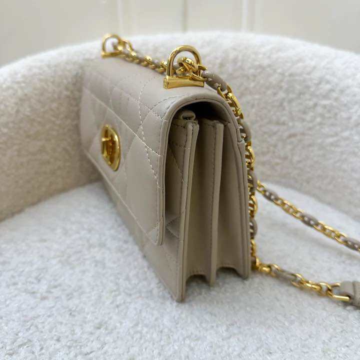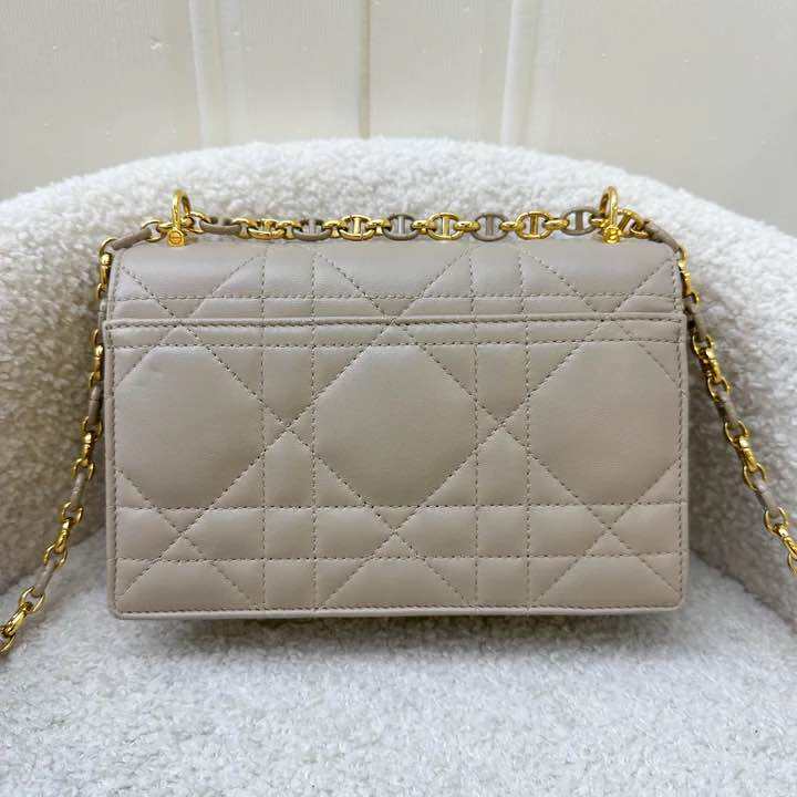 (Pre-loved) Dior Miss Caro Mini Flap Bag in Powder Beige Macrocannage Lambskin and GHW