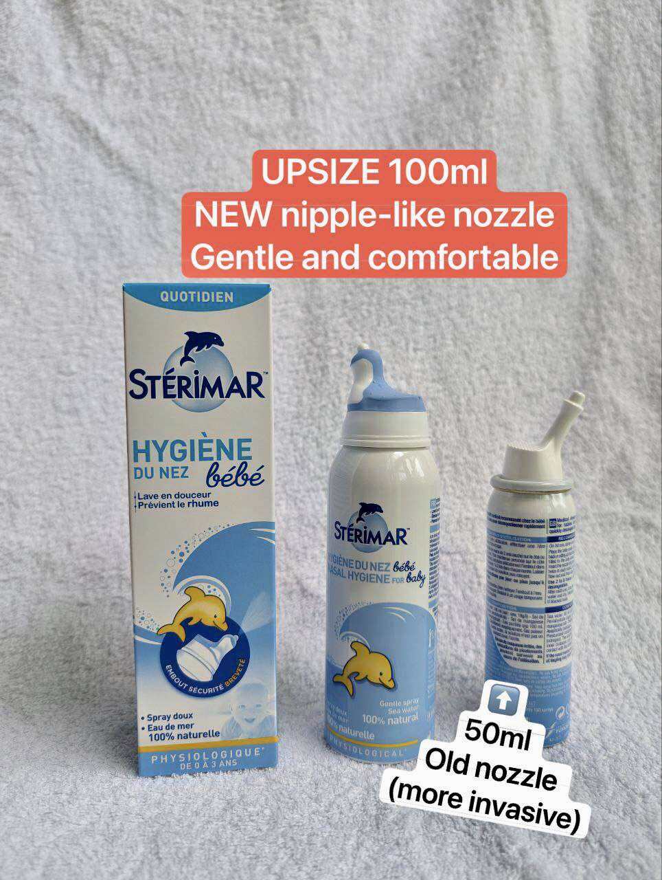 [NEW VERSION] The Stérimar™ patented nozzle has a gentle micro-diffusion spray to coat the inside of the nasal passages and ensure easy breathing and the prevention of colds.
