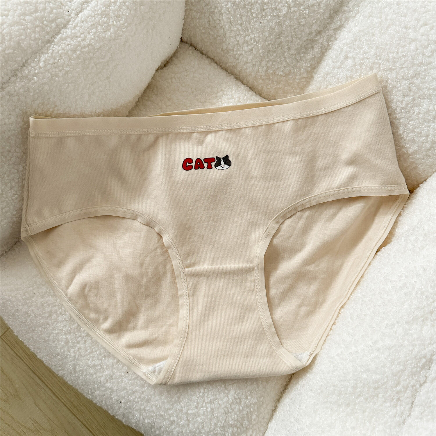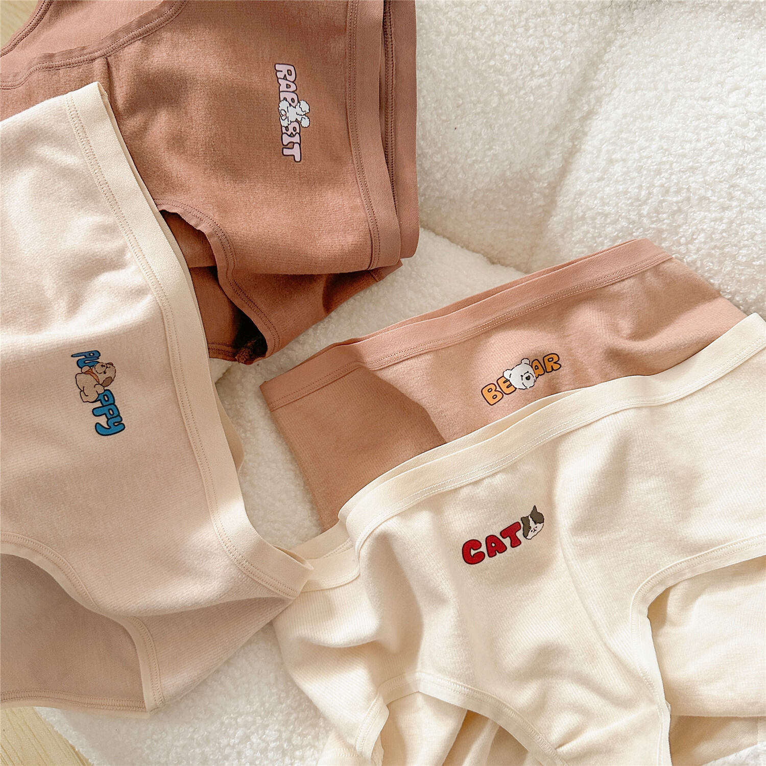 Cat and Dog ~ Adorable Pet Mid-Rise Women's Underwear Earth Color Briefs Textured Cartoon Underwear Female plus Size