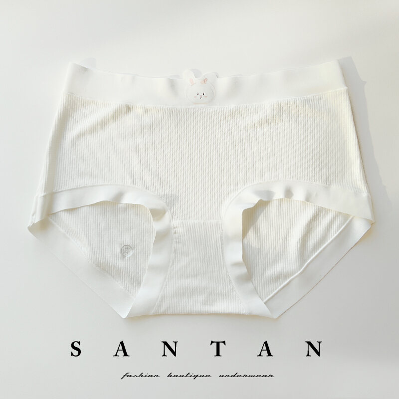 Soft Glutinous Rice Rabbit Cute Young Adult Adorable Rabbit Print Underwear Mid Waist Classic Briefs 5A Antibacterial Cotton Crotch