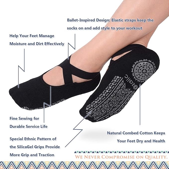 - HOLD YOUR POSE WITH EASE - You will feel confident, stylish and protected with our anti-skid, non-slip ballet-inspired socks. Feel free to move and spread your toes naturally with our full toe grippy socks with the cute design. If you're looking for socks which are ideal for yoga, pilates, barre, ballet, bikram, gym or dance, you can stop the search!