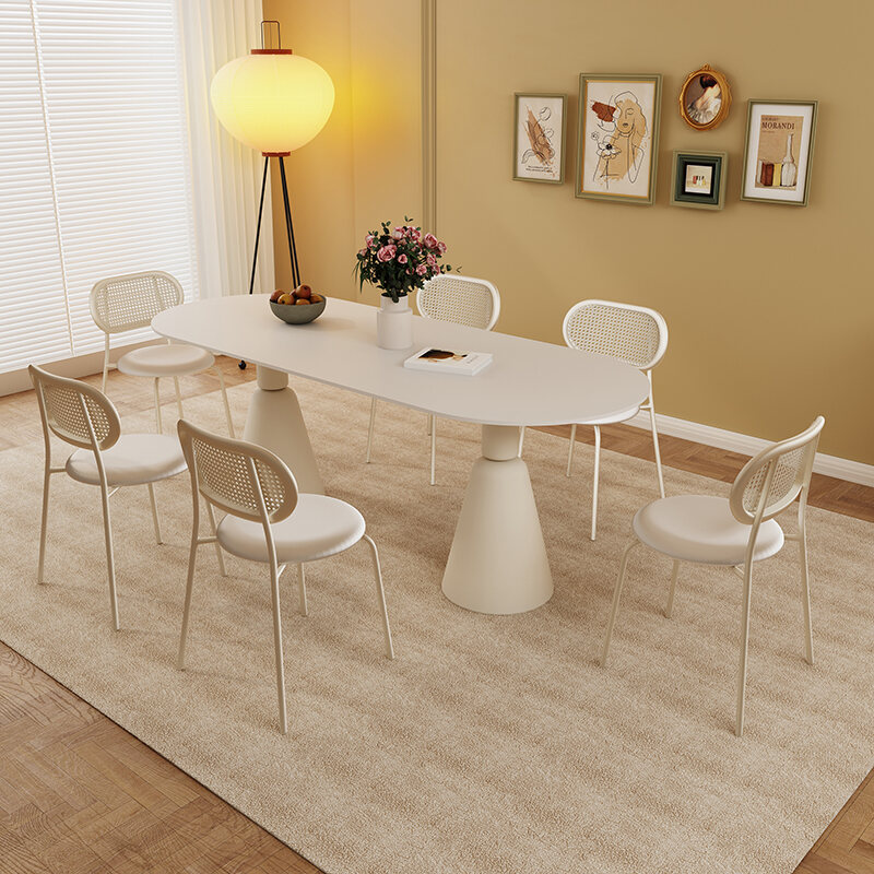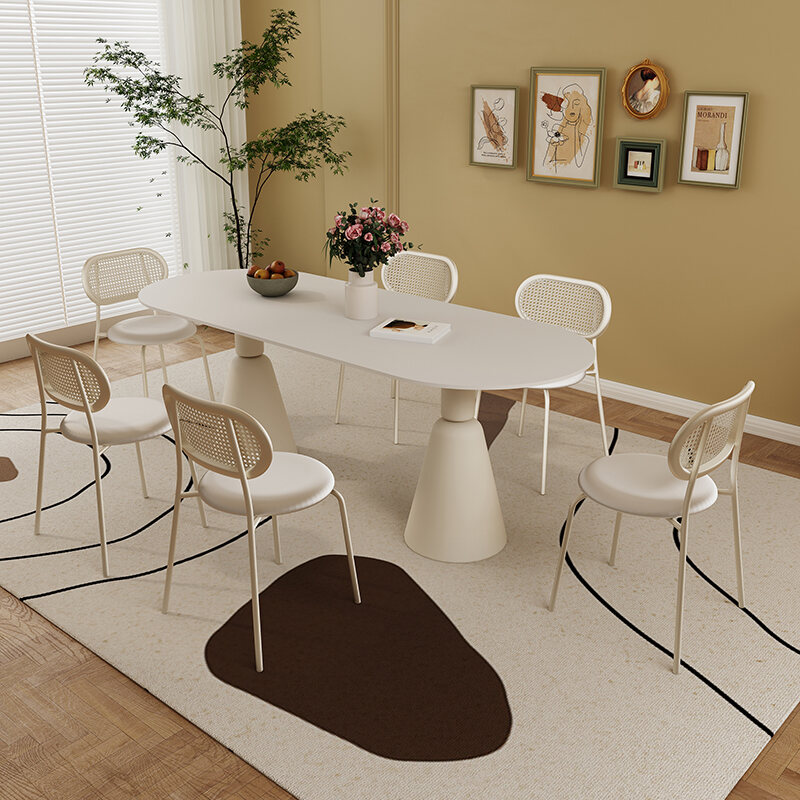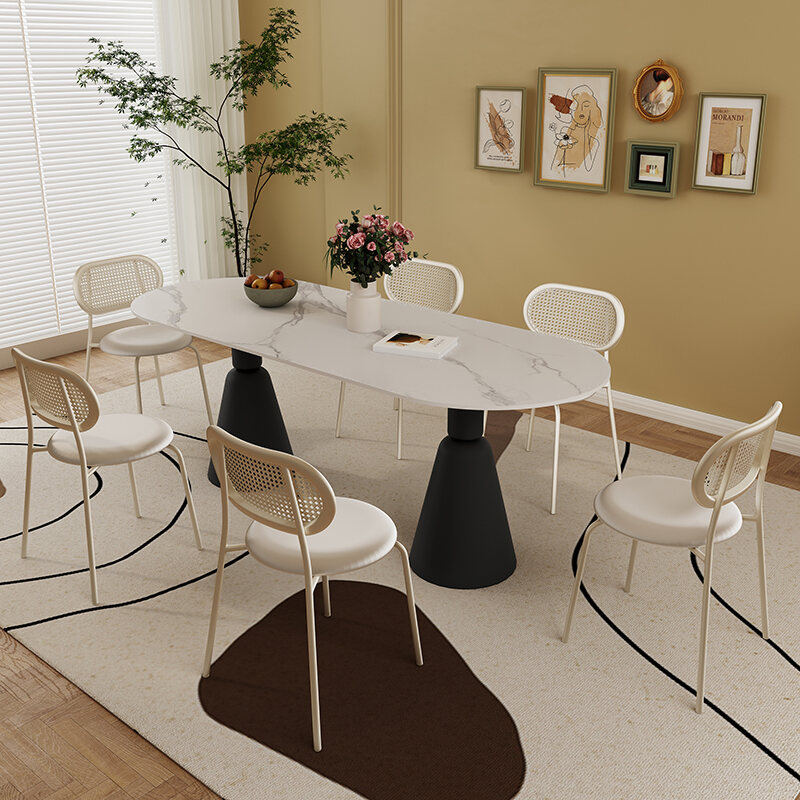 Rock Plate Dining Table French style Cream Style Simple Modern Small Apartment Home Oval Internet Celebrity Light Luxury High end Table Chair