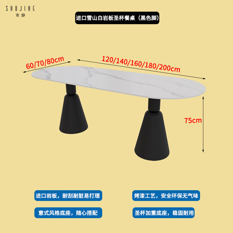 Imported pure white rock plate Holy Cup dining table (black feet)