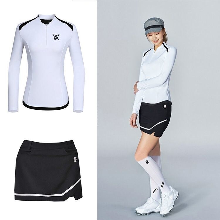ANEW New golf clothing women's jersey suit zipper round neck versatile top hip-covering skirt outdoor sports quick-drying NEW Korean original 2023