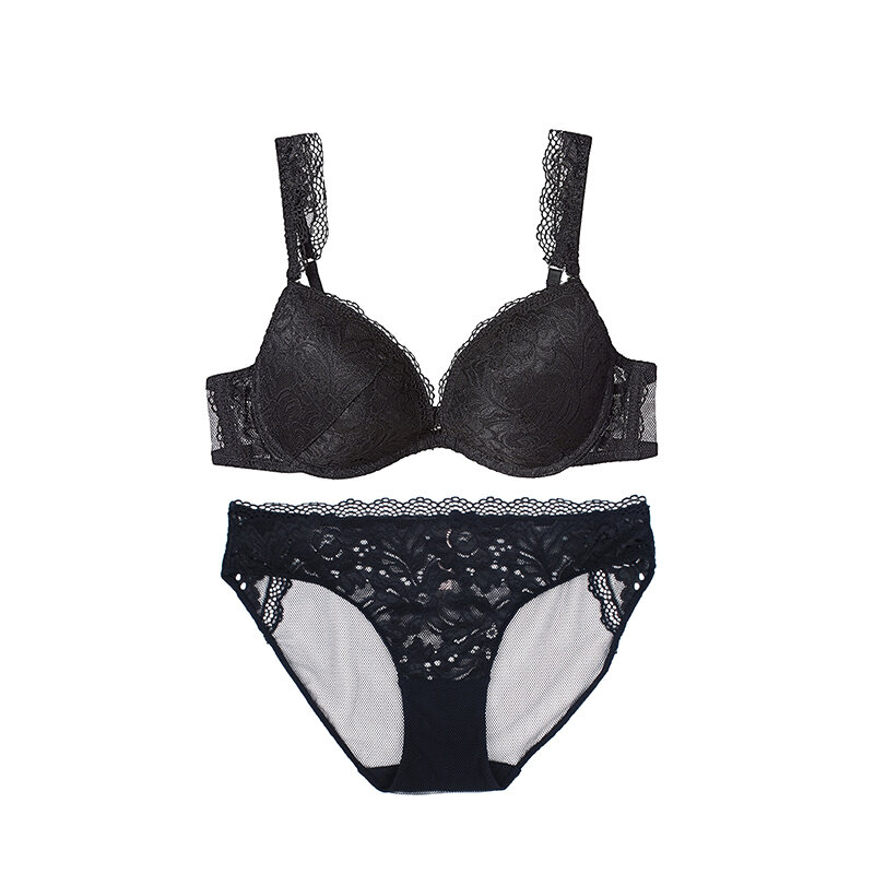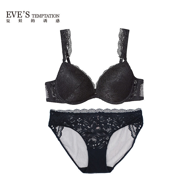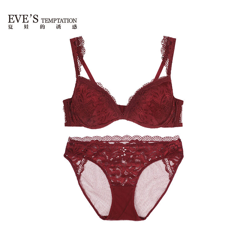 [Set] Eve's Temptation Begonia Series Sexy Lace Edge Deep V Push up Bra Women Upper Support Underwear