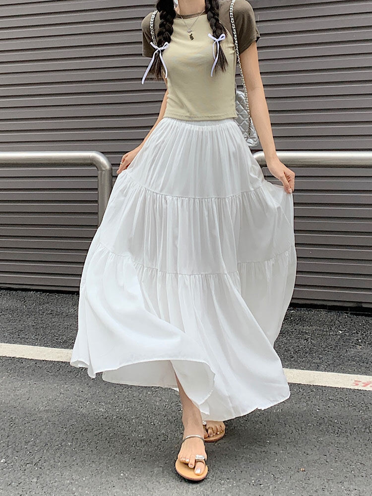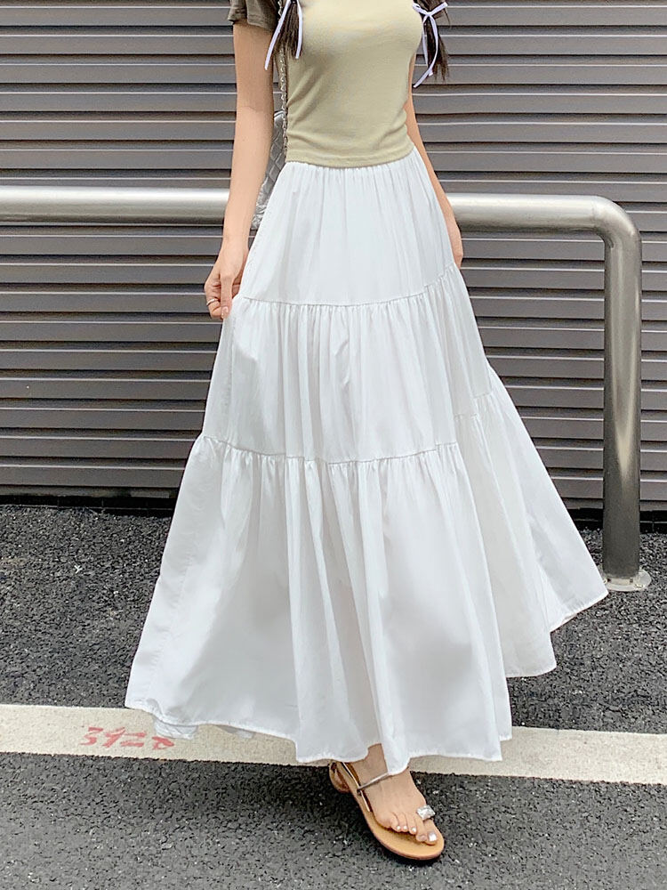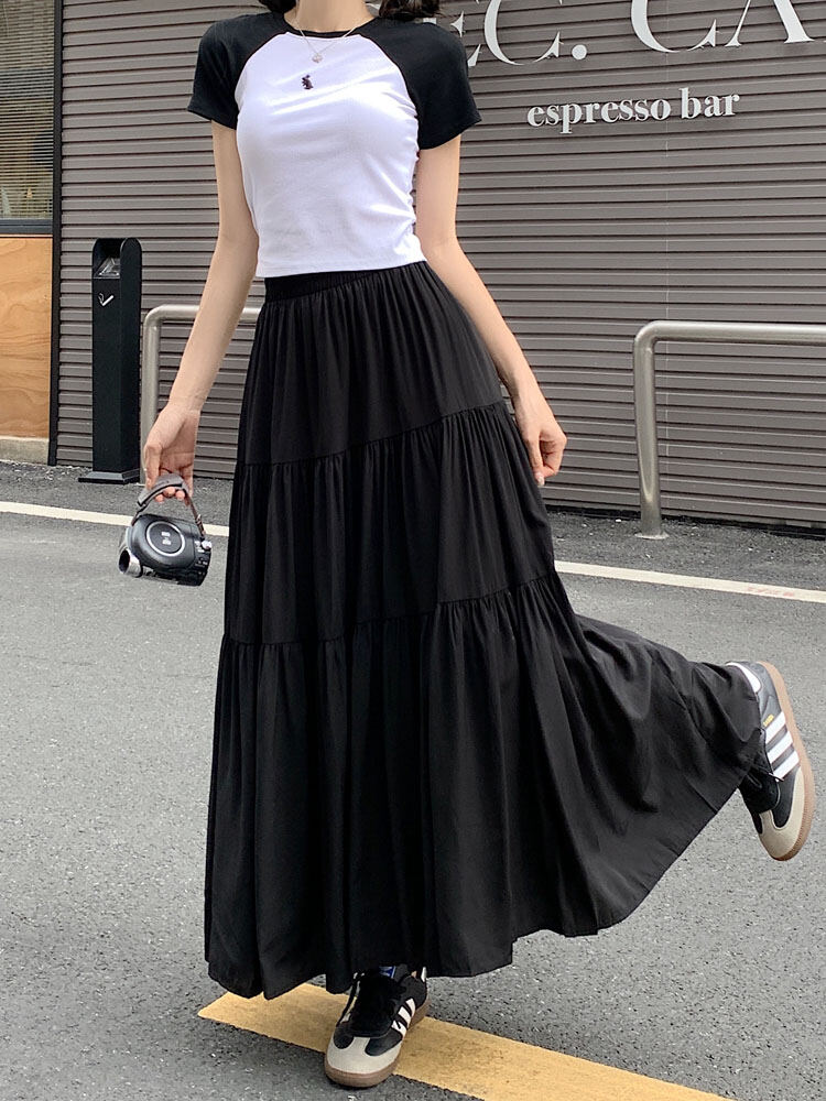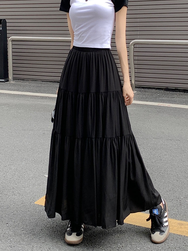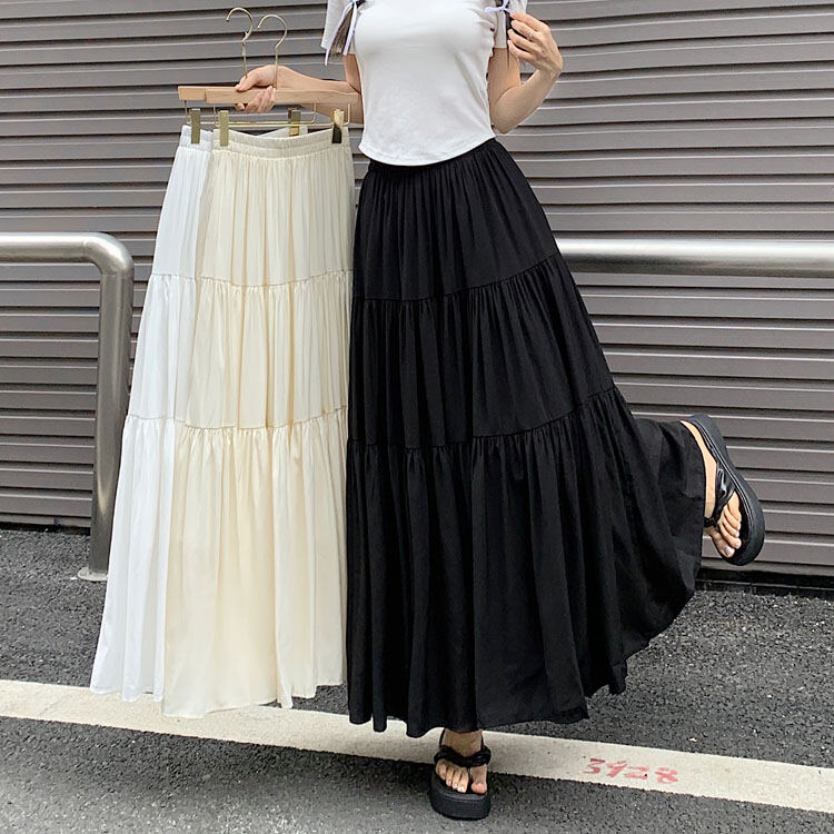 Summer 2023 New Arrival Korean Style Sense of Design Skirt Patchwork Mid Length Long Length Big Hem A- line Skirt Women's Summer Skirt