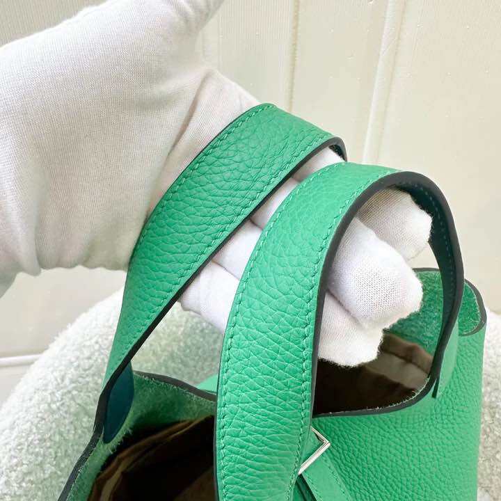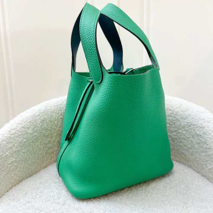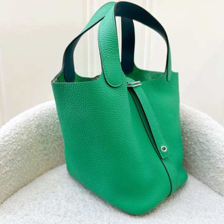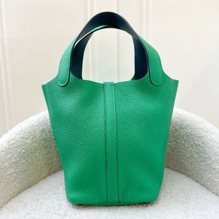 (Pre-loved) Hermes Picotin Lock 18 in Menthe Clemence Leather with Vert Bosphore Handles and PHW