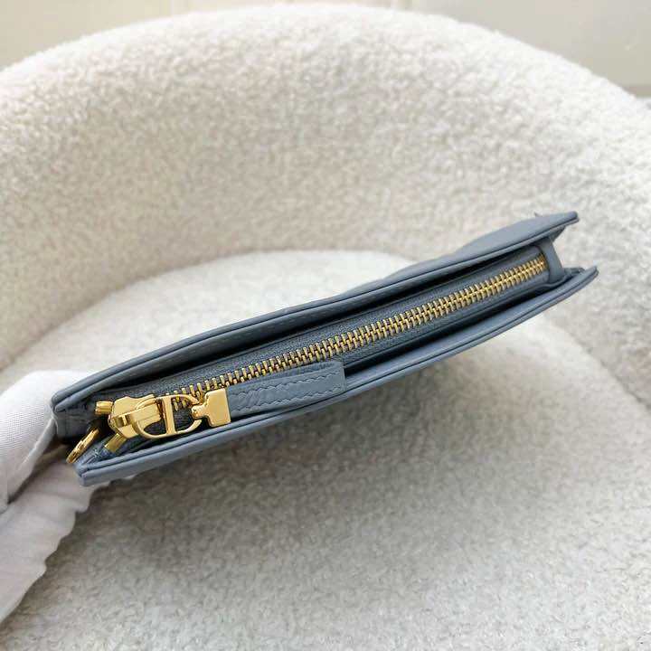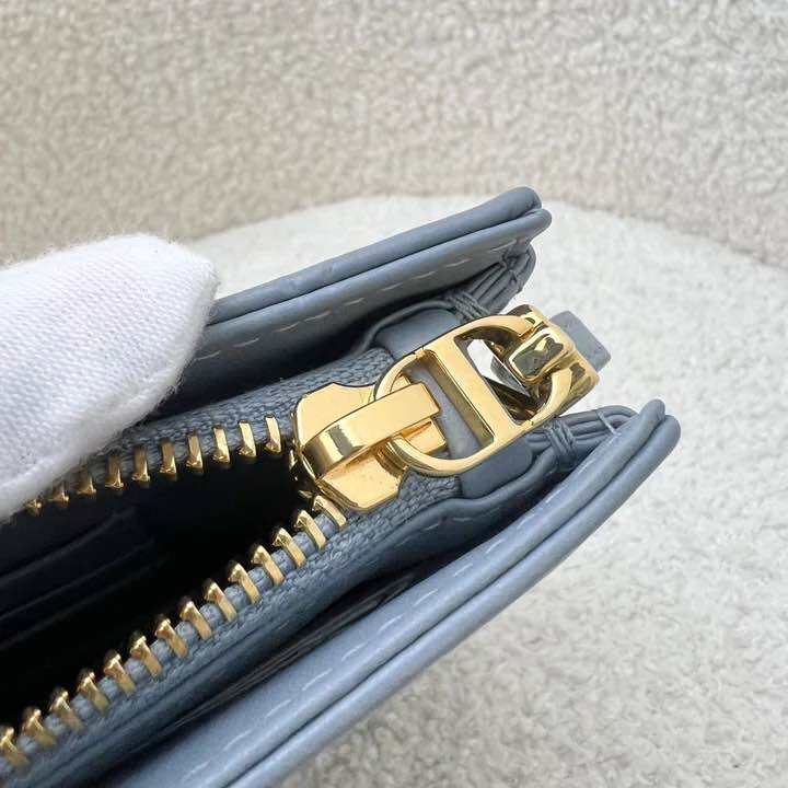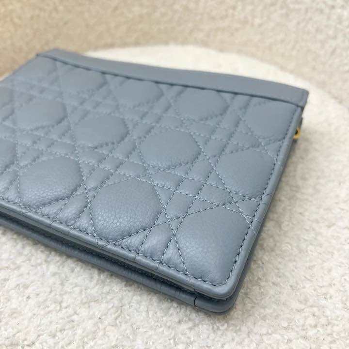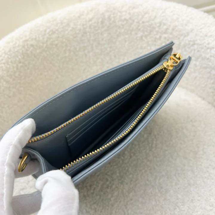 (Pre-loved) Dior Caro Pouch / WOC in Stone Grey Supple Cannage Calfskin and GHW