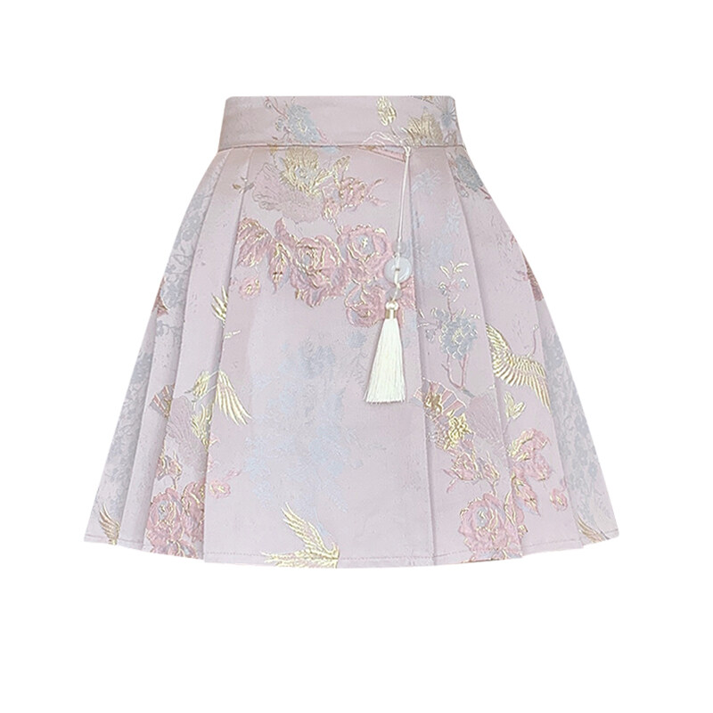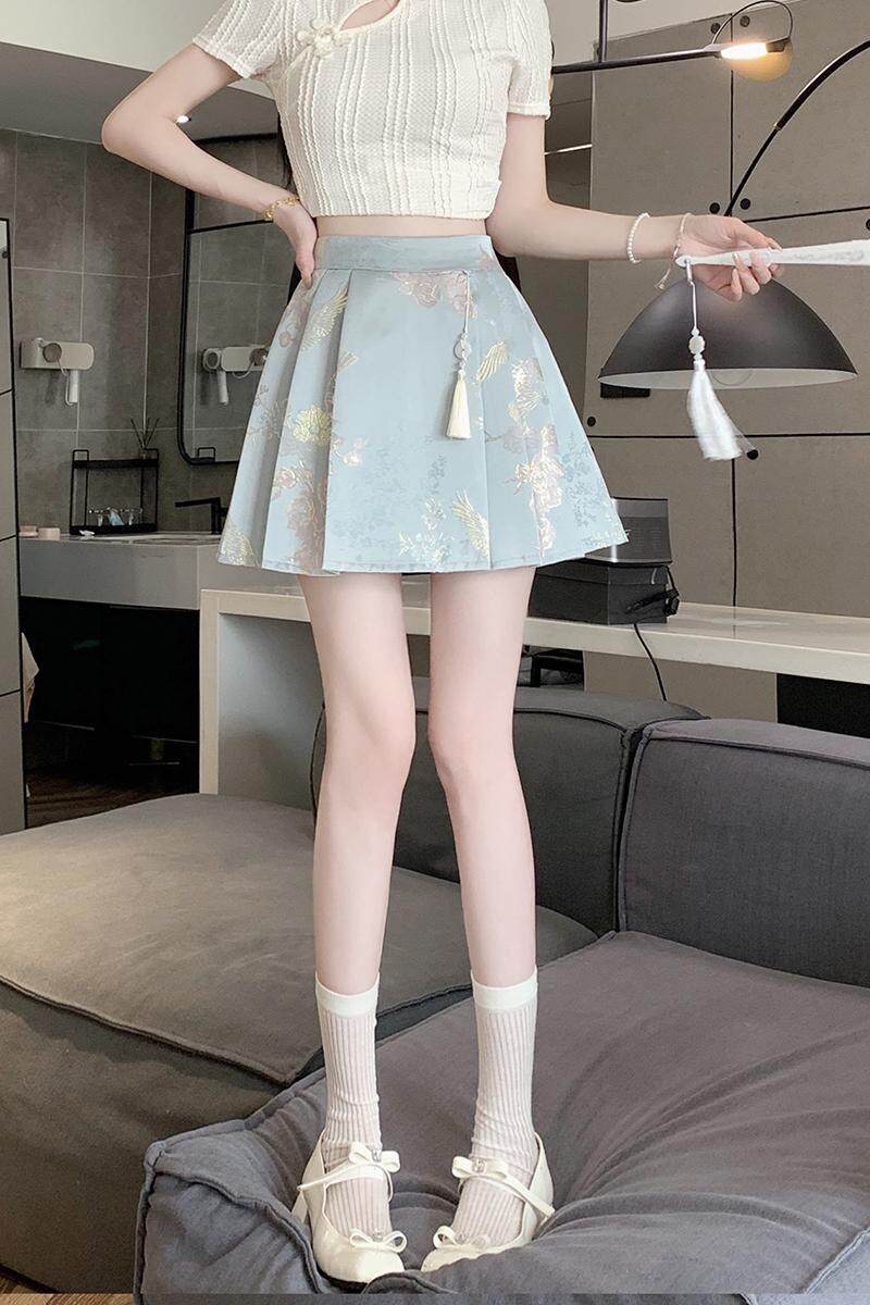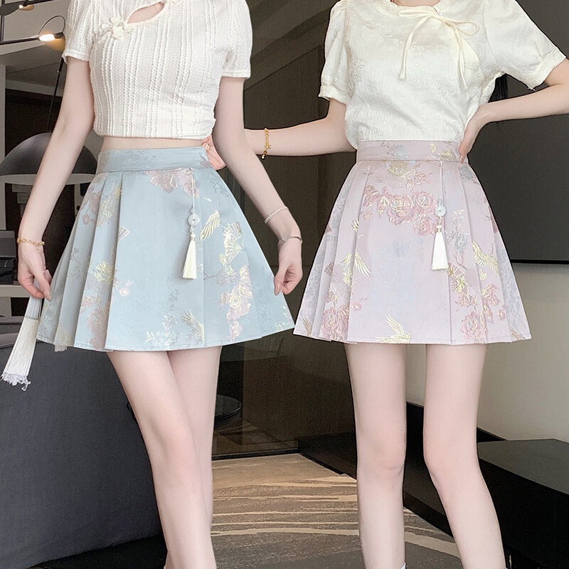 YIGE High end satin jacquard horse face skirt 2024 new Chinese style half skirt for women with small stature and pleated short skirt