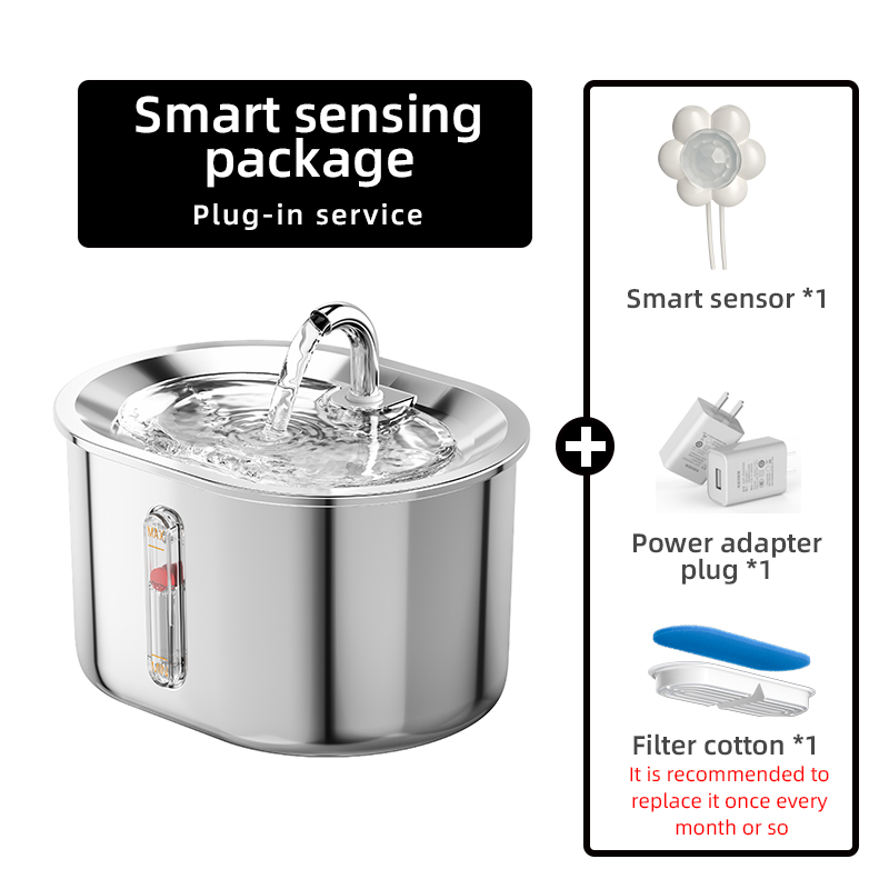 ? Intelligent Separate Sensor - When pets near, the automatic water; out ofthe range of automatic stand by. More quiet, more power saving and prolong the service life of the filter element. Can better attract pets to drink more water. Induction range: 0.2-2m or so