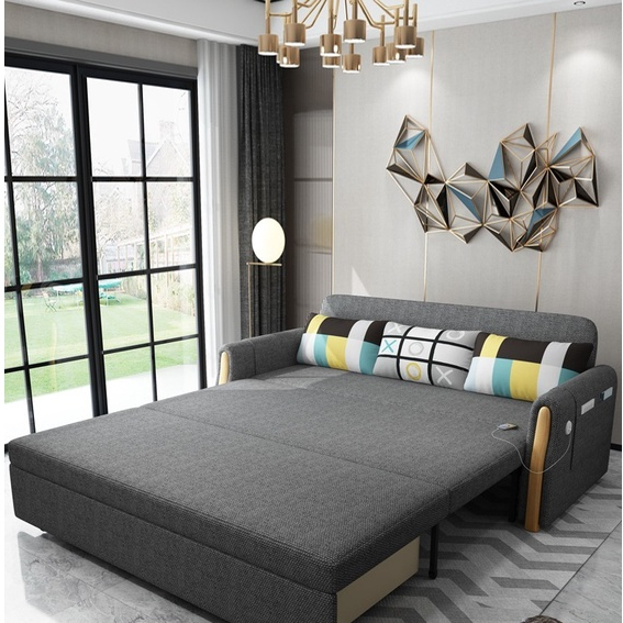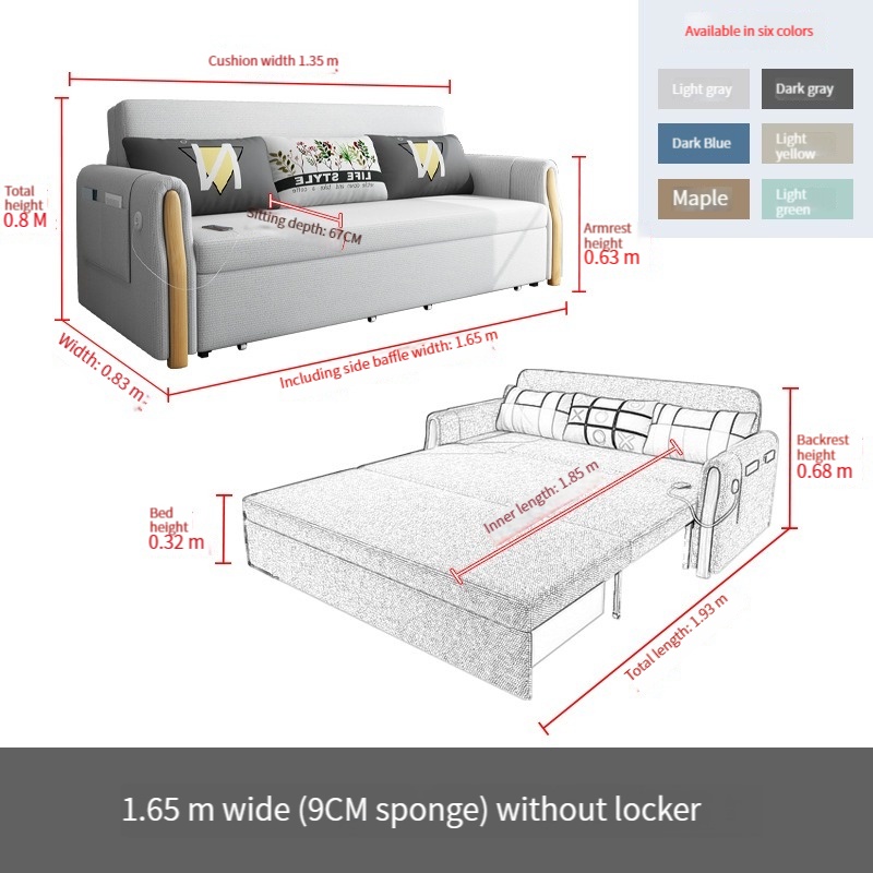 *Fabric sofa bed,multi-functional foldable sofa, small household, solid wood 1.5 meters, double 1.8 meters can be stored