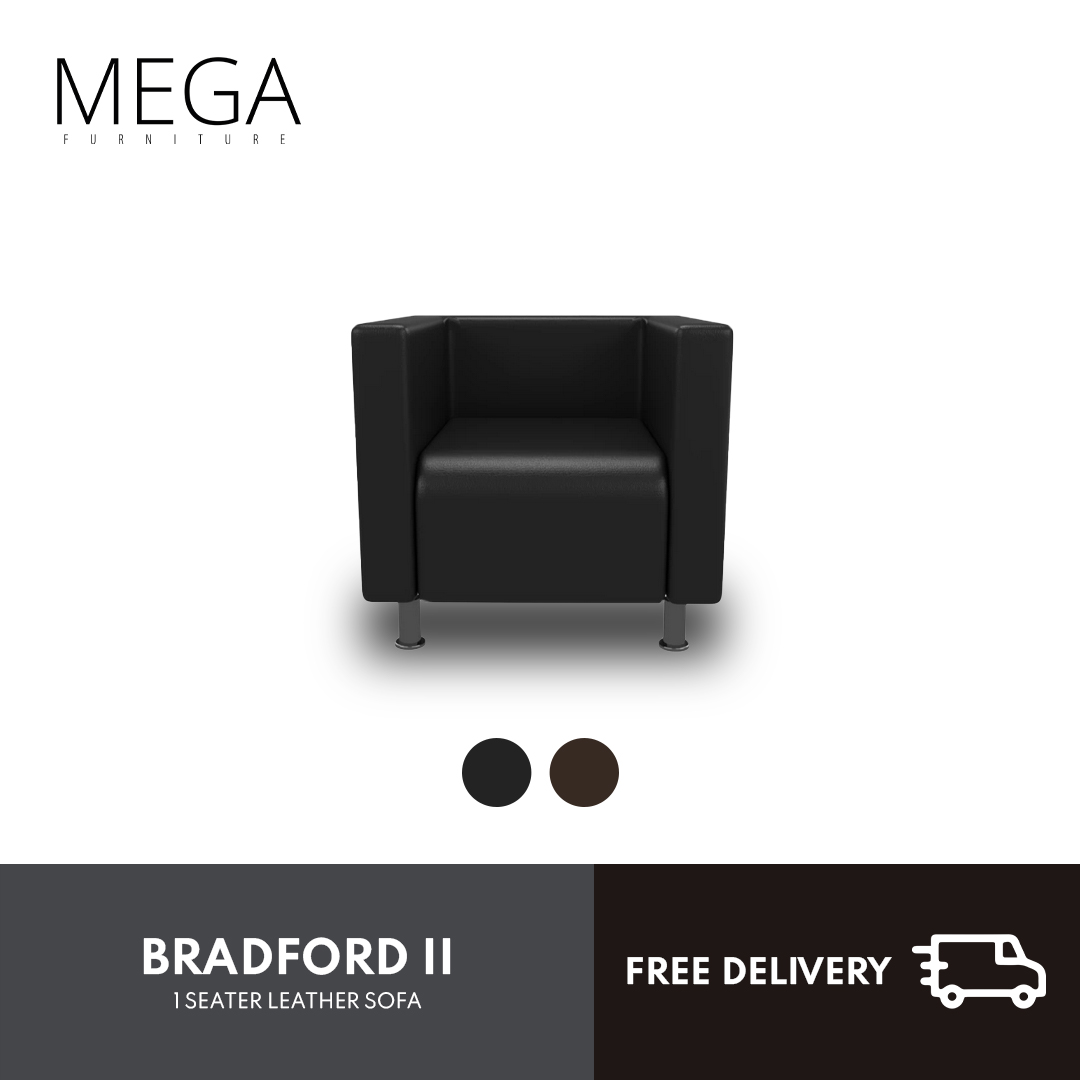 [Bulky] Bradford II Leather Sofa (Metal Legs) - Black, Dark Brown