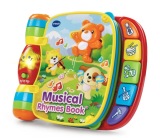 Explore classic nursery rhymes with the Musical Rhymes Book by VTech. Your little one will build motor skills by sliding and twisting the fun play pieces while exploring each easy-to-turn page. Then they'll play piano sounds with the five colorful piano keys that introduce colors and instruments. Two fun modes include learning mode that introduces age-appropriate vocabulary and music mode that plays music and instrument sounds. The interactive storybook provides visual stimulation with brightly colored pages and a light-up star that flashes along with the sounds.