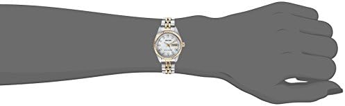 Coin edge bezel; mineral crystal lens Mother-of-pearl dial with day/date calendar window; gold-tone hands and premium crystal markers; printed outer minute track Two-tone stainless steel bracelet; fold over clasp Case diameter: 24.5 millimeters Inner bracelet circumference: 7 inches Water-resistant to 165 feet (50 M): suitable for showering and short periods of swimming. Pull the crown out to set the time on calendar watch         #3,232 in Clothing, Shoes & Jewelry ( )   #8 in