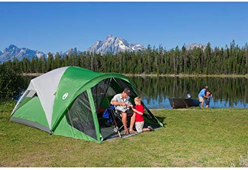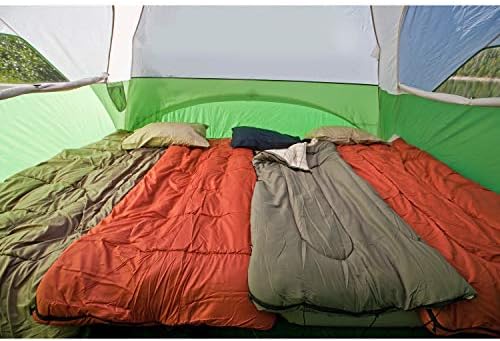 polyester taffeta 75D    Made in the USA or Imported    Measures 14 x 10 feet with 5-foot 8-inch center height    Spacious tent has enough room for 6 people with 2 queen size airbeds    Sets up in 15 minutes with rainfly and carry bag included    Snag-free continuous pole sleeves with insta-clip attachments to stand up to winds    WeatherTec System features patented welded floors and protected seams to keep you dry, angled rainfly lets in light but not water