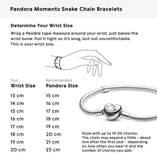 Give your collection a fresh romantic look with the Moments Silver Bracelet with Heart Clasp from Pandora. This stunning charm bracelet is crafted from polished sterling silver in the classic snake chain design featuring an exclusive love heart shaped clasp, with perfect branded engraving. Celebrate those moments which create your love story with this romantically inspired collection from Pandora. Sterling Silver: The world’s most popular silver alloy, our sterling silver consists of 92.5% silver and 7.5% other metals (such as copper). This blend is excellent for jewelry because it preserves the color, luster and the weight of silver while vastly improving the durability of your bracelets. Memories Are Forever: Important milestones and moments are here to stay. Perfect gift for your wife, mother, daughter, granddaughter, niece, or any charm bracelet beginner. Mark your loved one's big day (wedding, sweet 16, new baby, Mother's Day, etc.) with the gift of expressing their individuality through their fashion and style. Tell Your Story With Charms: All women have their own individual stories to tell, a personal collection of special moments that makes them who they are. We celebrate these memories that bring us together and make us who we are. Manufactured Responsibily: At Pandora, we believe that responsible business practice and our aspiration to offer high quality jewelry go hand in hand. We're committed to developing and manufacturing responsibly, for our teams, and to minimize our environmental impact on the planet. #82,934 in Clothing, Shoes & Jewelry ( ) #15 in