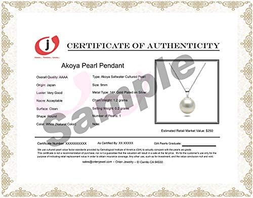 Japanese AAAA Akoya White (natural color) cultured pearl measured at 8mm and perfectly round! 18" (1.2 grams) 14K white gold plated on 925 sterling silver settings and match box chain! Come with an elegant jewelry box to ensure the most beautiful presentation possible and a certificate of authenticity to verify the quality and source of the pearls! Harvested in northern coast of Japan to ensure the longer growing season for good luster, thick nacre and clean/smooth surface! All our pearls are certified by GIA (Gemological Institute of America) Pearls Graduate to make sure the strictest of standards! To guarantee your complete and total satisfaction, we offer our customers a 30-Day free of charge return policy, PLUS One Year Free Repair Guarantee for Loose Pearls!         #1,105,800 in Clothing, Shoes & Jewelry ( )   #5,933 in   #27,951 in