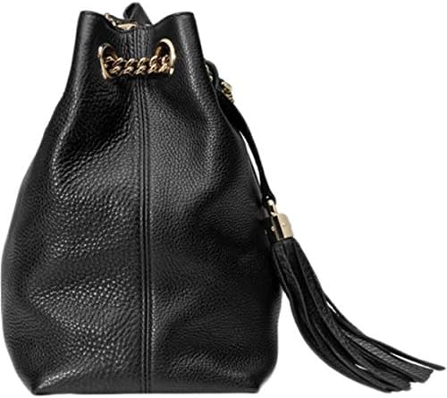 This Gucci black leather bag features the interlocking GG logo. It is large enough to carry all of your essentials in style. The shoulder straps are made of gold chain, but come with leather shoulder padding for comfort. This designer handbag goes great with everyday looks and is super classy. Model: 536196 Black Leather Embossed interlocking G Detachable leather tassel Double chain shoulder straps with leather shoulder pad Inside hook closure Light fine gold-toned hardware Two Interior Pockets Strap Drop: 8.75" Measurements: 16" x 5.5" x 10.6" (LWH)         #3,198,683 in Clothing, Shoes & Jewelry ( )   #7,176 in   #18,758 in