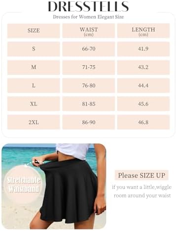 Skirt for Women - This skater skirt has aline silhouette, elastic waistband, which make it kindly for all body types. Fit and flare enough for casual wear. The versatile skirt is a trendy item in the wardrobe.Designed with a high-waisted and elasticized waistband, our skirt ensures a comfortable and secure fit, allowing you to move freely throughout the day. Mini Skater Skirts - Go beyond the age limit and release your vitality to your heart's content. Whether it's as a basis for fashionistas, party skirts for teen girls, or women's daily work needs. This short skirt will get your favor.The classic black color adds a touch of elegance to your outfit, making it a versatile wardrobe staple that can be dressed up or down with ease. 2 Length Options - Mini & Midi Length.This women pleated skirt allows you to choose the length that suits you according to the needs of different occasions. The mini skirt can visually modify your leg lines, and at the same time bring out a cute and playful temperament. The midi skirts can meet your needs for formal occasions, such as churches. Gift Ideas - Best gifts for teens and juniors girl! Sutable for school dance party, bachelor play party, homecoming and graduation! A good choice for holiday beach vacation, skating/ tennis event.Perfect for any occasion, our skirt is crafted with a pleated A-line silhouette, making it suitable for both casual and formal settings. Detail Tips - For detailed size information, please refer to the size chart. If you are between sizes, please select the bigger size so that you can have it altered! If you have any questions or concerns, our friendly team is here to assist you.         #37,151 in Clothing, Shoes & Jewelry ( )   #153 in