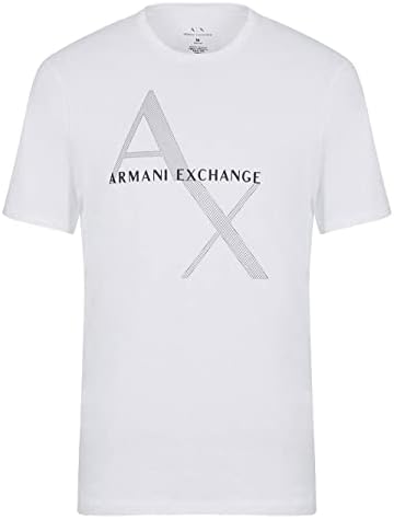 A|X ARMANI EXCHANGE mens Tonal and Contrast Logo Core Crew Neck T Shirt, Quilted Logo White, Medium US