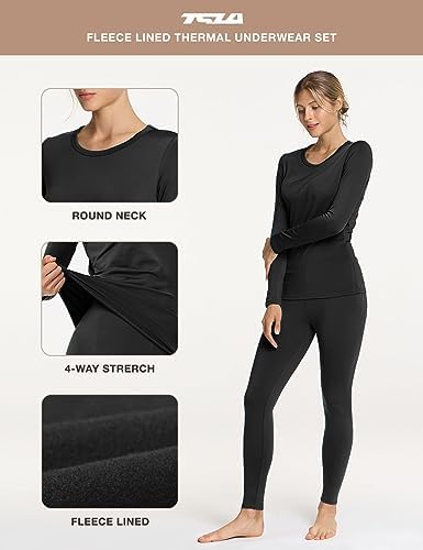 TSLA Women's Thermal Underwear Set, Soft Fleece Lined Long Johns, Winter Warm Base Layer Top & Bottom