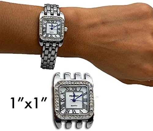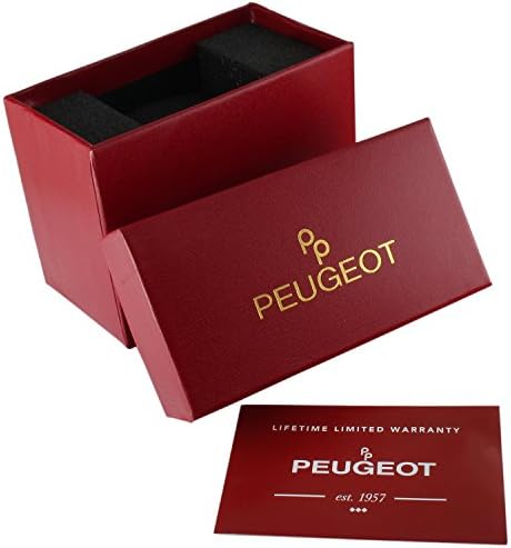 The panther design 4 link bracelet is soft and fluid that hugs the wrist for a most comfortable fit Bracelet is 7 inches in length. Links can be removed to make it shorter & extra links available at no cost. Fold over deployment clasp can easily slip on & off with no buckle to fuss with. This women watch features a white ceramic finish dial, black Roman numeral dial same as found in classic vintage watches. It is easy to read the time at a glance. The metallic blue hands ads the final touches for this unique timepiece. Make a statement! This Peugeot express the ultimate in luxury Swiss design. 14Kt gold plated tank case for long lasting luster and is 24mm (approx. 1") and ideal size for most average Women's wrist. Bezel is encrusted with hand set sparkling European crystals. All Peugeot watches are fitted with Accurate Quartz Movement manufactured by Seiko and backed by Lifetime warranty which includes FREE battery replacement. Watch comes with a presentation box ideal for gift giving. Water resistant: protected against accidental water contact such as splashes, moisture and rain. Not recommended for submerging in water.         #333,230 in Clothing, Shoes & Jewelry ( )   #1,077 in