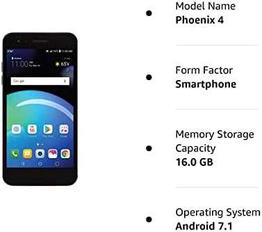 LG Phoenix 4 Smartphone, 4G LTE, Android 7.1 OS, 16GB, Black for AT&T Prepaid