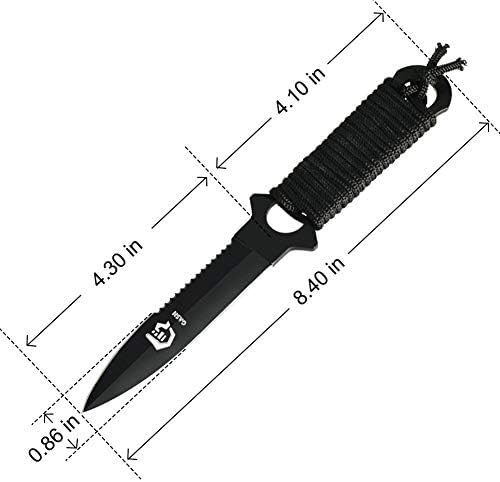 Gasher Scuba dive Gear:The classic style straight army knife will be a good partner while camping, climbing, hiking, fishing, hunting, BBQ, Military & Army needs, Outdoor sport, Expedition, DIY, Survival, Emergencies, Aid.    Safe and Dependabl: Have confidence that the blade will not slip with the security of the front bulge. The nylon rope with handle also protects your hands from scalding.    Lightweight Scuba Diving Equipment : This pocket knife is very lightweight to carry. Survival knife with its extreme spear point blade with sharp and razor edge blade for scuba diving & spearfishing, snorkeling.    SCUBA DIVING KNIFE WITH QUICK ADJUST SHEATH STRAPS : Our dive knife comes with knife sheath having locking mechanism to allow one-hand release. Leg/Arm straps makes the placement of your knife easy, comfortable and always accessible to you.    High Quality: Our tactical knife made of high quality stainless steel blade material that is corrosion-resistant & never rust. One side of the blade is straight-edged, the other one is serrated right along the blade.