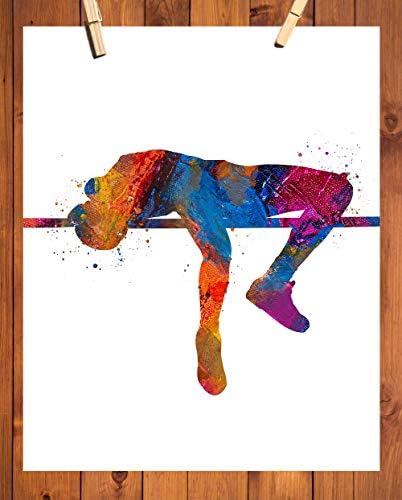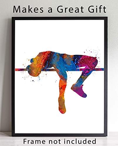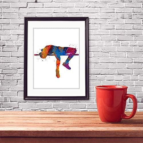 UNIQUE DESIGN - An original wall artwork and conversation piece. High Jump Track and Field Athlete Abstract Sport Wall Art Print 11x14    Original Design - A unique artwork and conversation piece    Ideal Gift for Athlete Teen Boy Bedroom Decor, Club Locker Room, Coach and Fan    Ready To Frame - You will receive one unframed 14x11 inch high jumper athlete wall art print    Frames are easily purchased here on Amazon or at any local arts and crafts or department store
