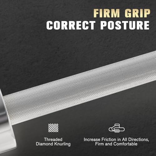 RitFit 7ft Olympic Bar with bearing weights 20 kg (~44 pounds), has a bar shaft diameter of 28 mm, and a length of 2.2 meters (7.2 feet). Needle bearings allow for a smoother, quieter spin and a more reliable turnover at maximum loads.Weight Capacity: 500lbs. 【Build to Last】 Built to the highest standard using high-quality steel materials, barbells feature an oxide finish and are built to be durable for a lifetime of quality weight lifting. 【The Best Choice for You and Your Home Gym】 The hybrid bars are intended to be used as a general-purpose bar that is suitable for the Olympic lifts but can also handle the slower, heavier power lifts, perfect for most athletes, and ideal in home gym and garage gym settings.The Volcano knurling type on the grip provides enough friction to grip. All the 2 inch weight plates are suitable for thr bar. 【6 Different Options】. RitFit Olympic Bars provide 4ft/5ft/6ft/7ft length to choose from. Whether you’re a newbie, intermediate, or elite athlete, you can find a bar good for you.We provide rackable barbells for most weightlifting exercises, also provide unrackable barbells for lightweight workouts. 【Warranty】RitFit Weight Bar is rugged and durable enough to come with a LIFETIME WARRANTY against Bending.