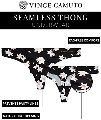 OFFICIALLY LICENSED VINCE CAMUTO: Women's Thong Panties; Committed to delivering the highest quality products, the most consistent branding, and unsurpassed value with passion, integrity, and loyalty SEAMLESS: Built with comfort in mind, these thong panties are seamless and tag-free so you can stay comfortable THONG STYLE: Women's underwear with a logo waistband that sits on the hips and natural cut leg openings; thong style helps prevent panty lines MULTIPACK VALUE: Get 5 or 10 pairs of seamless thongs for one great price EASY CARE: Machine Wash, Tumble Dry; Please Reference the Product Description for More Details         #52,253 in Clothing, Shoes & Jewelry ( )   #141 in