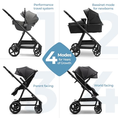Room to Grow & One Hand Recline - Meteor2 includes car seat adapter, compatible with infant car seat. With a range of recline options, this infant stroller will go from bassinet to upright with one hand. Offering your newborn the security they need from the start.    Open Up to the World - The reversible seat on these 2 in 1 strollers for newborns allows you to manage their visual stimuli. Provide reassurance with the parent-facing, or let them take it all in with eyes wide open. As baby develops the Meteor can match their growth, along with an adjustable footrest for added comfort.    Smooth Strolling - The omnidirectional luxury stroller wheels allow for effortless 360-degree maneuvering. Paired with advanced suspension for exceptional cushioning. The newborn stroller even has a height-adjustable faux leather stroller handle that is designed to suit you    For On-the-Go Families - This stroller bassinet combo features a compact design with extra storage capacity. Stash everything you need under the seat for all-day outings. When it’s time to go, it folds in one step and stands independently, for easy loading and unloading    Shielded & Safe - When you're invited out on a bright sunny day, accept the invitation. This stroller for newborn children has a zip-out UPF 50+ canopy that provides maximum coverage. Ventilation panels on the side of these toddler strollers provide optimal airflow and natural light. You'll also receive a cup holder, foot cover, rain cover, and car seat adapter