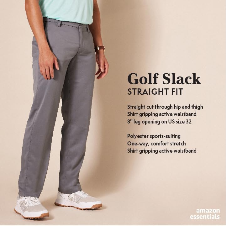 STRAIGHT FIT: Fits with slight ease through hip and thigh with straight leg. Sits at the waist. PERFORMANCE FABRIC: Train in confidence with these lightweight golf pants featuring a moisture-wicking, gentle stretch and wrinkle-resistant fabric GOLF STYLING: Designed for optimal performance and all day comfort on or off the course. Shirt-gripping active waistband keeps your shirt neatly tucked in. DETAILS: Features classic front and back pant pocketing with a fifth pocket for tees, markers, or coins. LEG OPENING: 8" on US size 32.